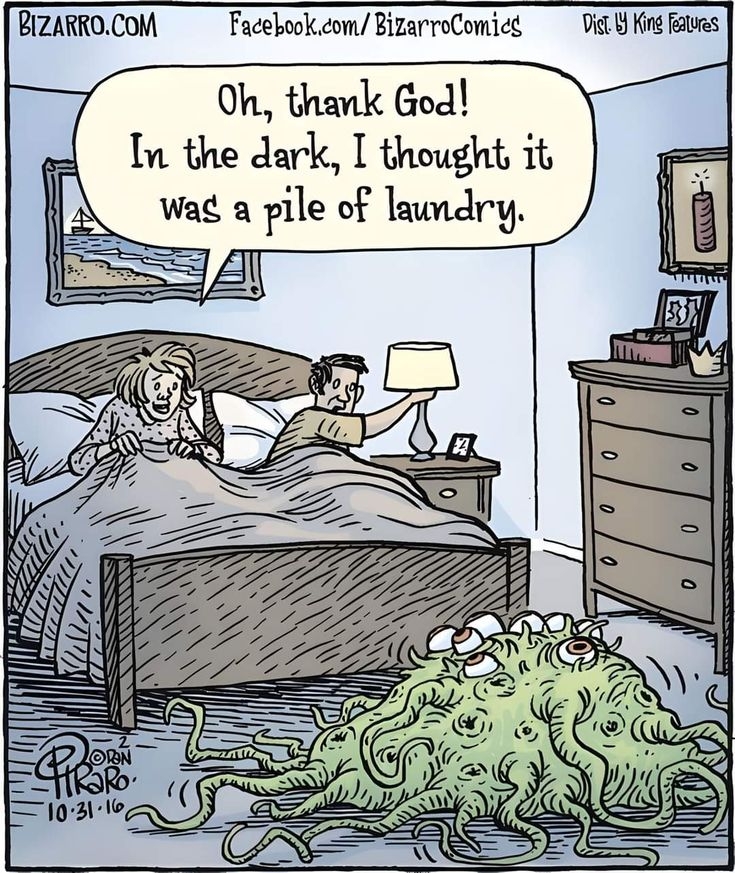 Oh, merci Mon Dieu ! Dans le noir, j'ai cru que c'était une pile de linge.