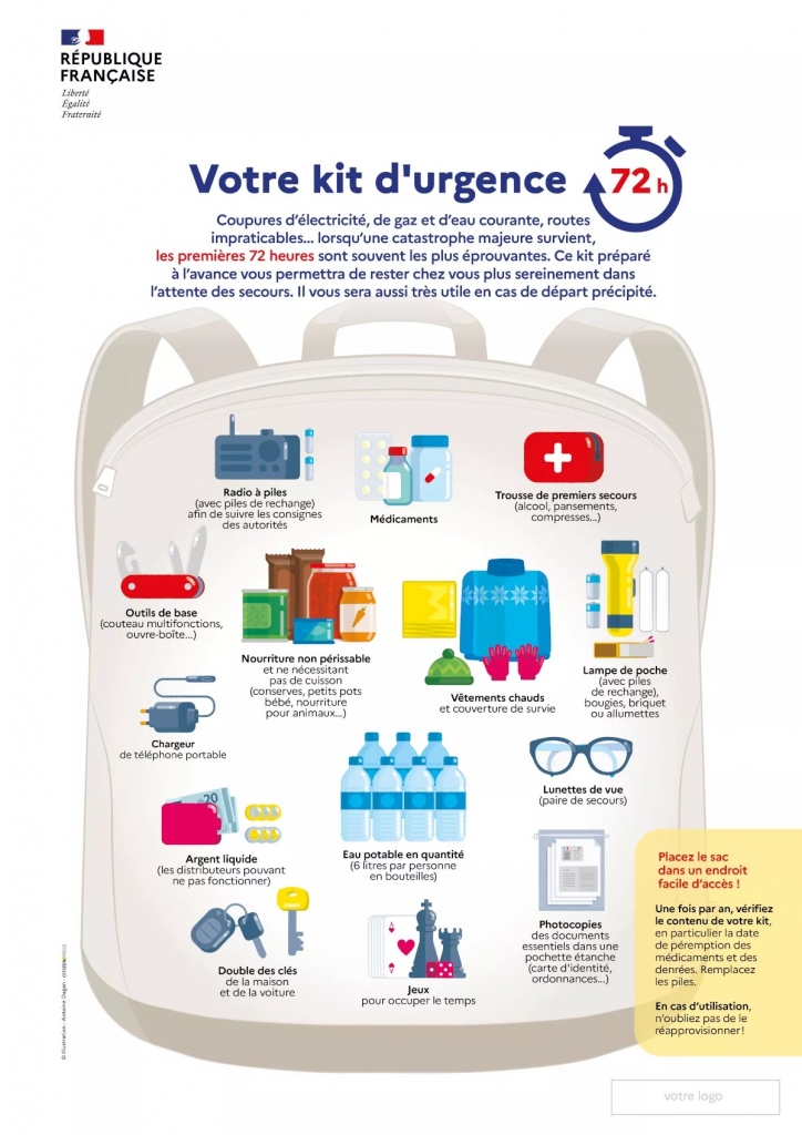 Le kit d'urgence que le ministère de l’Intérieur vous propose de préparer pour tenir 72 heures en cas de situation de crise grave :