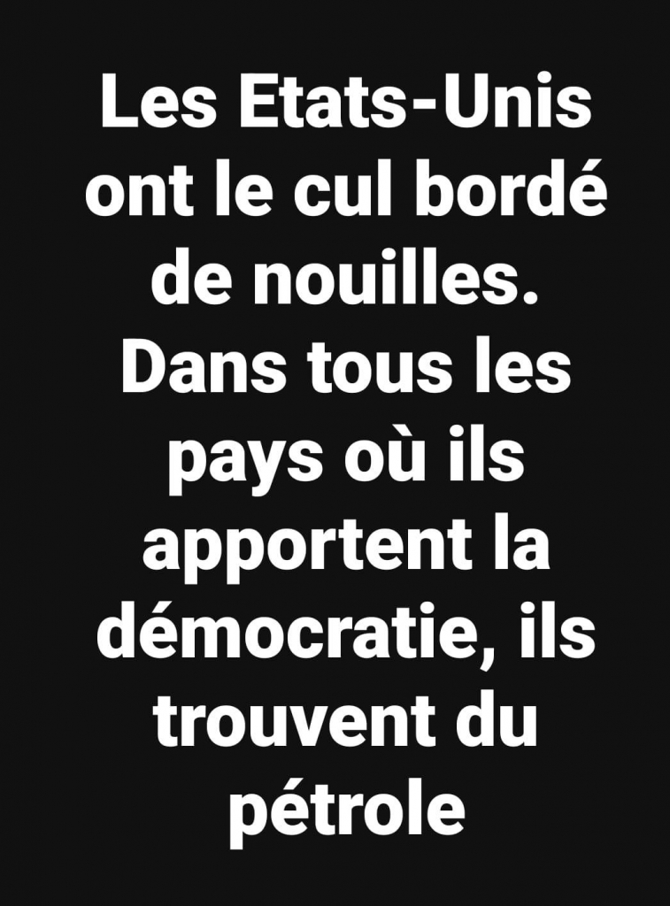 Variante de la première image : "Les Etats-Unis n'ont pas de chance : presque tous leurs gisements de pétrole sont à l'extérieur de leurs frontières, dans des pays étrangers."